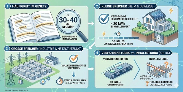 Verbindliche Ziele für den Ausbau der Stromspeicher fehlen im neuen Erneuerbaren-Ausbau-Beschleunigungsgesetz (EABG).