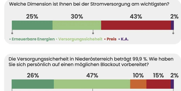 Für 43 Prozent der Niederösterreicherinnen und Niederösterreicher ist bei der Stromversorgung schlicht der Preis am wichtigsten. Nur ein Viertel entscheidet sich bewusst für die erneuerbaren Energien.